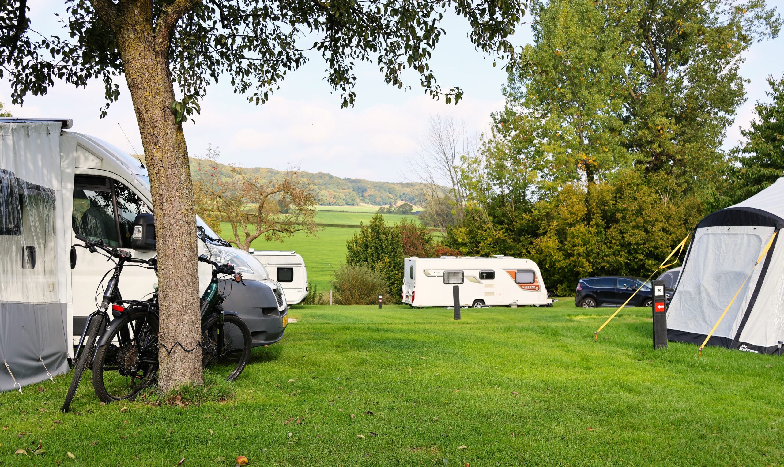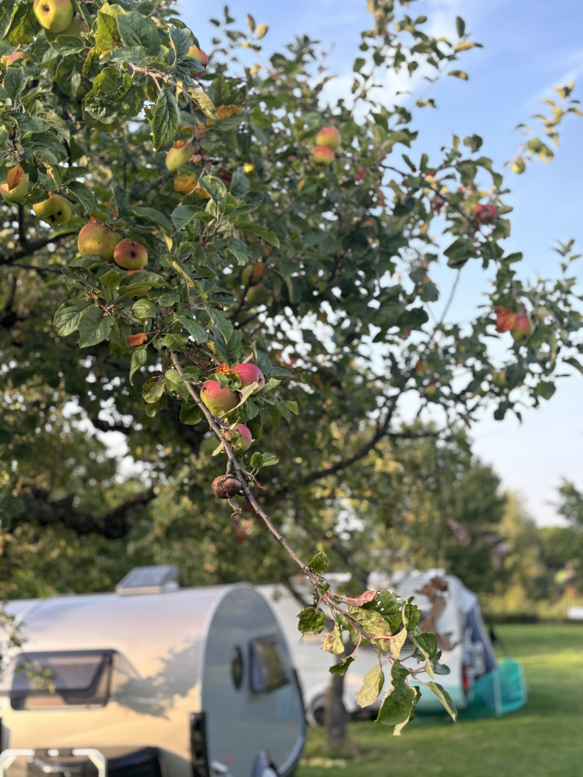 - De kampeerplaatsen in de hoogstamboomgaard zijn ruim 100m2 en autovrij.