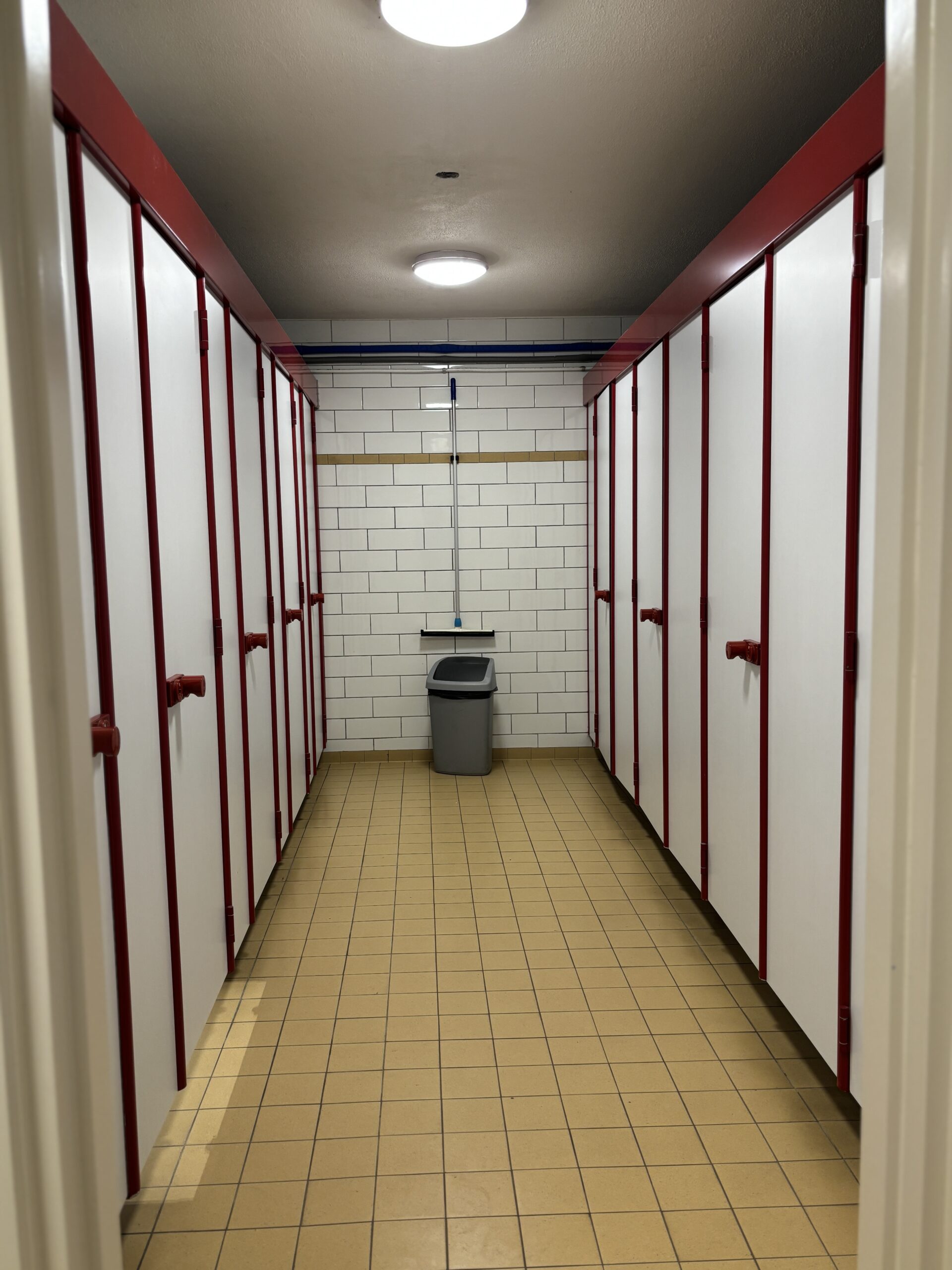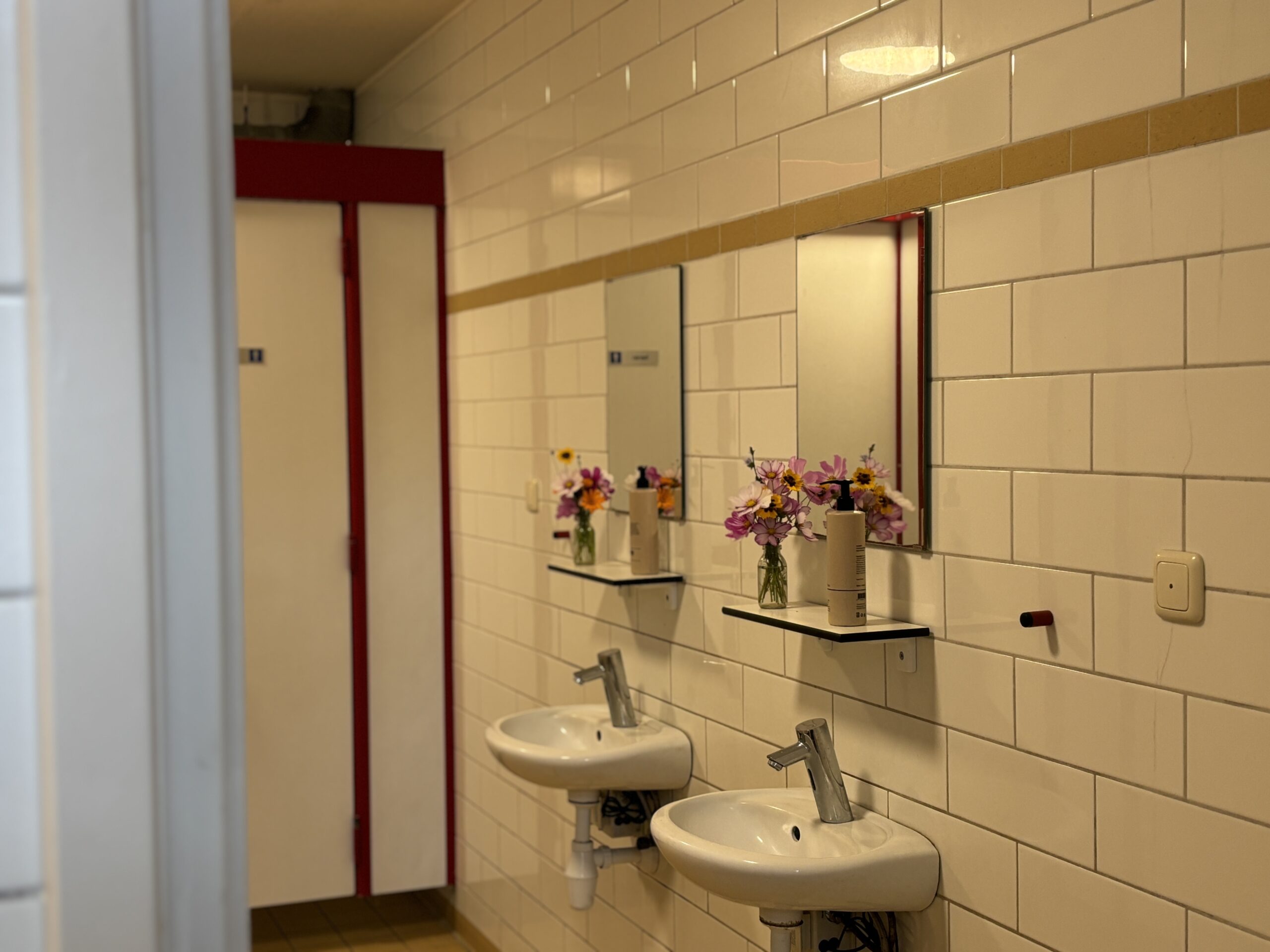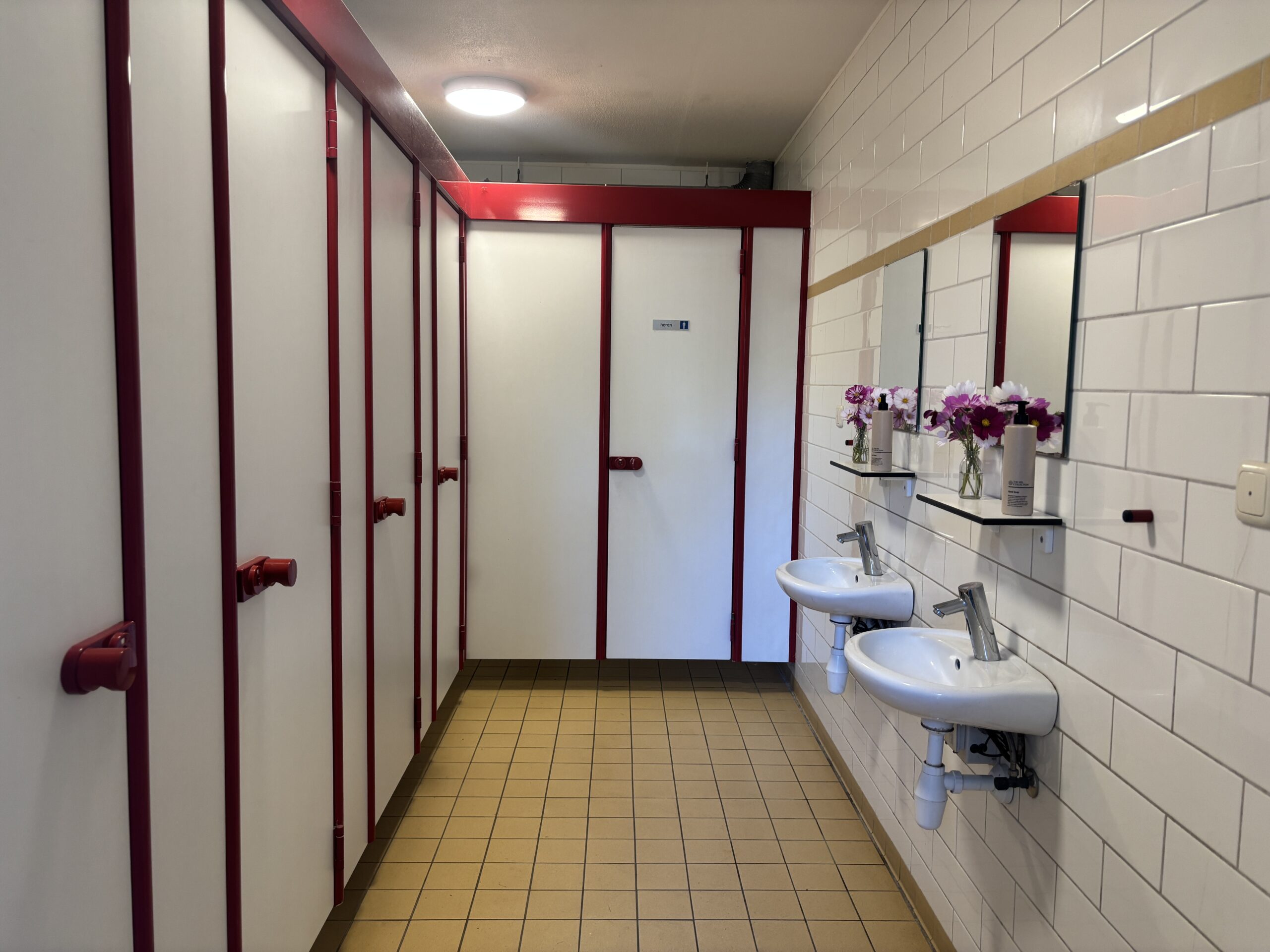 - In het voor- en najaar is het sanitair verwarmd. Dit sanitair is gedeeltelijk in de grond gebouwd, waardoor het er in de zomer dan ook lekker koel is.